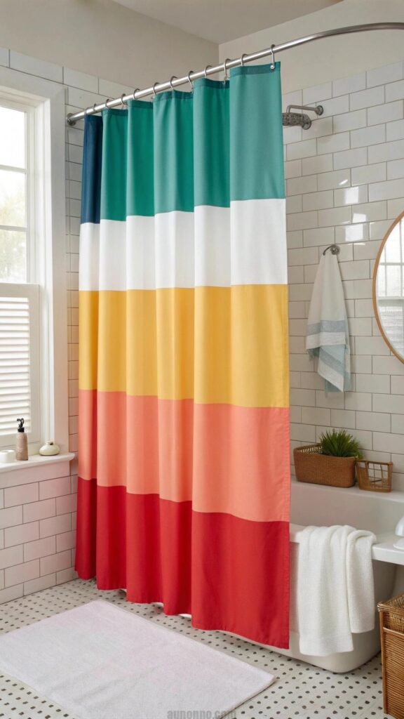 When using color blocking, consider the overall color scheme of your bathroom. You can use the shower curtain as a statement piece while keeping other elements more neutral. This approach allows you to play with color and create a fun, contemporary space that feels fresh and inviting.