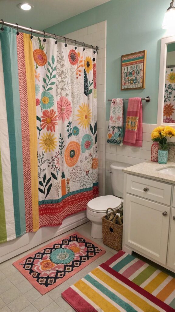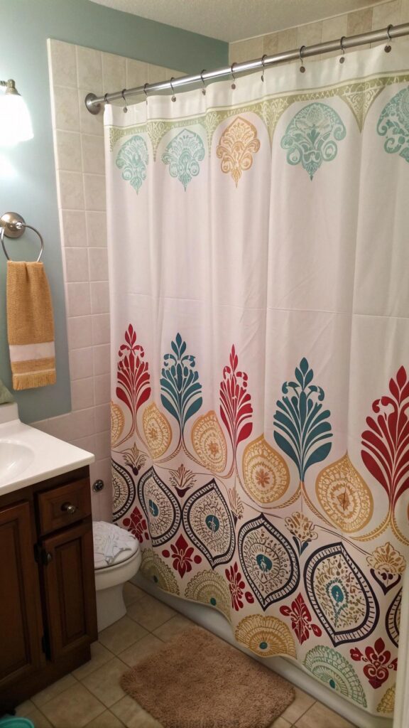 For those who love to experiment with different styles, an eclectic mix of patterns and colors can create a vibrant and dynamic bathroom. Choose a shower curtain that combines various designs, such as florals, stripes, and geometric shapes. This approach allows you to showcase your personality and creativity.