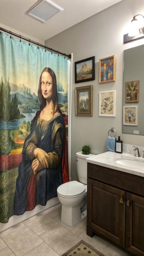 If you appreciate art, why not showcase it in your bathroom? Artistic shower curtains featuring famous paintings or original designs can turn your bathroom into a mini-gallery. This unique approach allows you to express your personality and interests while adding a creative touch to your space.