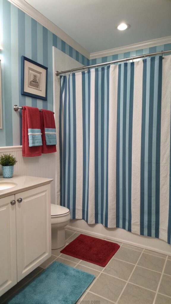 When incorporating striped shower curtains, consider the width and color of the stripes. Bold, wide stripes can make a statement, while thin, subtle stripes can add a touch of elegance. Pair your striped curtain with solid-colored accessories to maintain balance and prevent visual clutter.