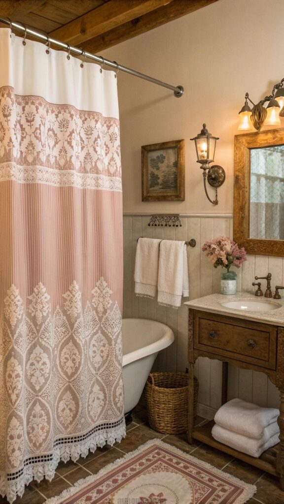 Vintage-inspired shower curtains can add a touch of nostalgia to your bathroom. Look for curtains with lace trim, retro prints, or classic patterns like damask or paisley. These designs can evoke a sense of warmth and charm, making your bathroom feel inviting and cozy.