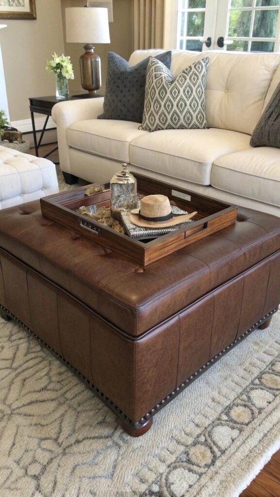 Pair the ottoman with neutral furniture to create a balanced look. A white or beige sofa works well with a brown ottoman, making the space feel harmonious. Add a few accent pillows for extra comfort.