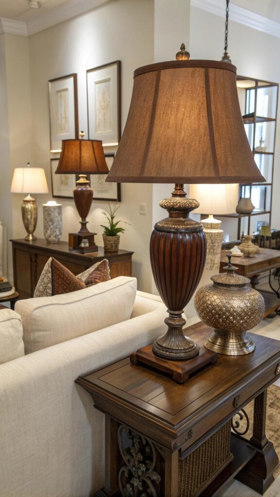 Pair the lamps with neutral furniture to create a balanced look. A white or beige sofa works well with brown table lamps, making the space feel harmonious. Add a few metallic accents for a touch of sophistication.