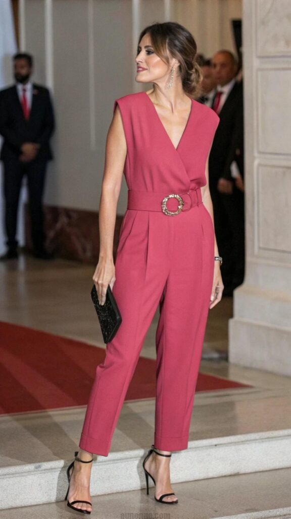 For a formal wedding, consider a jumpsuit in a luxurious fabric like crepe or satin. Pair it with heeled sandals and a clutch for an elegant touch. You can also add a statement belt to accentuate your waist. For a more casual wedding, a relaxed-fit jumpsuit in a lightweight fabric can be paired with flats or wedges for a comfortable yet chic look.