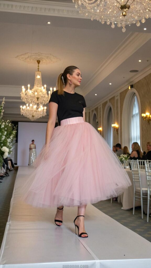 For a formal wedding, opt for a tulle skirt in a luxurious fabric and pair it with a sequined or embellished top. Add strappy heels and statement jewelry to elevate your look. If the wedding is more casual, a tulle skirt can be paired with a simple t-shirt or a lightweight sweater for a relaxed yet chic vibe. This combination allows you to enjoy the comfort of a casual outfit while still looking festive and stylish.
