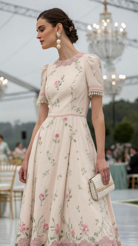 A vintage-inspired dress is a charming choice for wedding guests who want to embrace a classic aesthetic. This style often features retro silhouettes, such as tea-length or fit-and-flare designs, and can be adorned with unique prints or lace details. Choose a vintage-inspired dress in soft colors or floral patterns, and pair it with vintage-style accessories, such as pearl earrings or a beaded clutch, for a cohesive look.