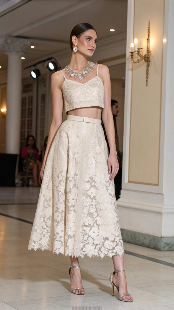 An elegant two-piece set is a modern and stylish choice for wedding guests. This outfit typically consists of a matching top and skirt, allowing for a coordinated look that can be both playful and sophisticated. Choose a two-piece set in a luxurious fabric or a fun print, and pair it with strappy heels and statement jewelry for a chic appearance.