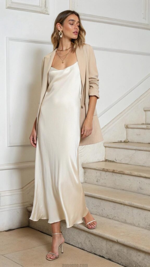 For a formal wedding, opt for a floor-length slip dress that exudes sophistication. You can layer with a tailored blazer or a lightweight shawl for added warmth. If the wedding is more casual, a knee-length slip dress can be paired with cute sandals or espadrilles for a relaxed yet stylish vibe.