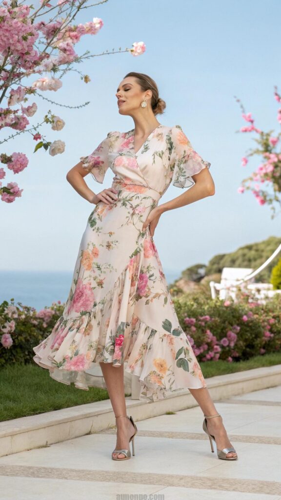 For a more formal wedding, opt for a floral maxi or midi dress in a luxurious fabric like silk or chiffon. This will elevate the overall appearance while still keeping the playful essence of the floral print. If the wedding is more casual, a knee-length floral dress can be paired with cute sandals or wedges for a relaxed yet stylish vibe.