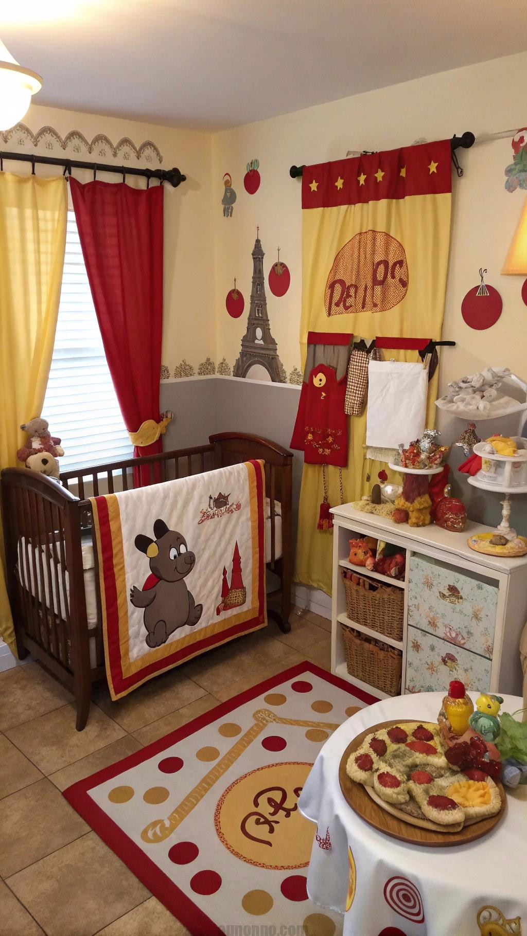 Bring the charm of Parisian cuisine into your nursery with a Ratatouille theme. Use a color palette of warm reds, yellows, and browns to create a cozy and inviting atmosphere. Start with Ratatouille-themed bedding and curtains that feature Remy, Linguini, and the culinary delights of Paris.