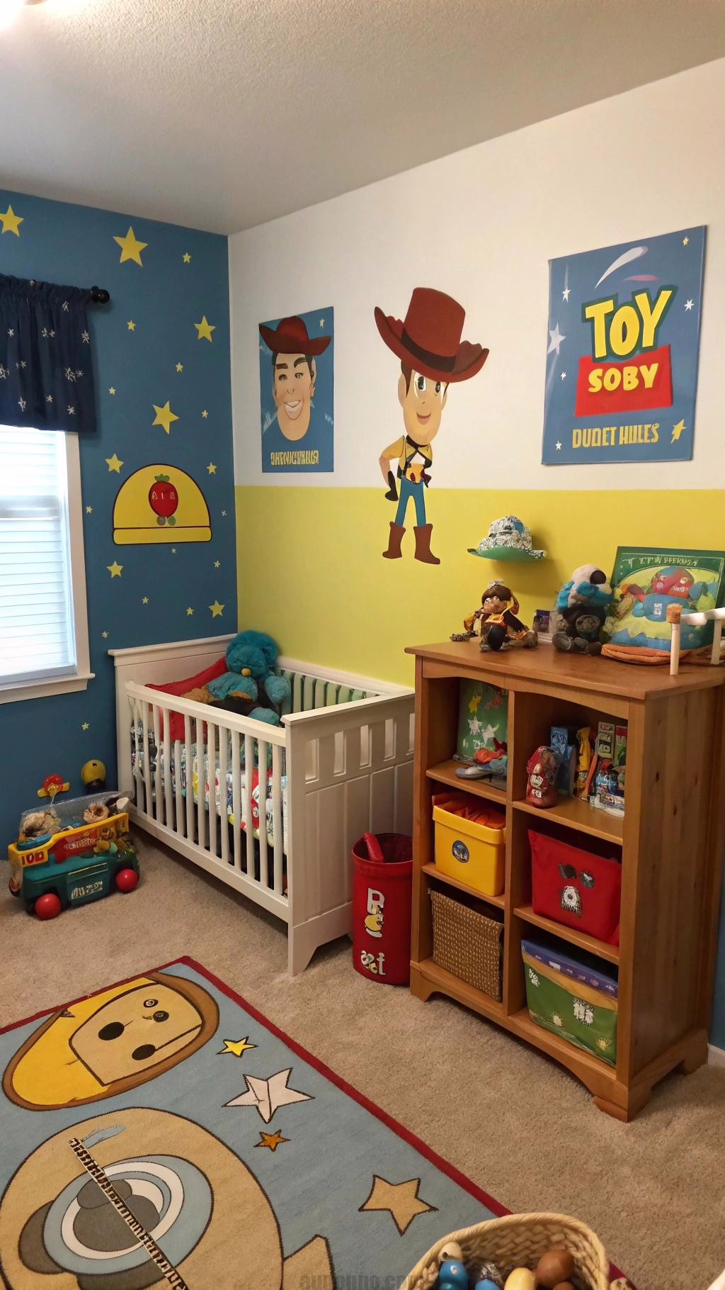 Bring the excitement of Toy Story into your nursery with a playful and adventurous theme. Start with a bright color scheme inspired by the characters, such as Woody’s cowboy colors and Buzz Lightyear’s space hues. Use Toy Story-themed bedding and wall art to set the stage for a fun-filled environment.