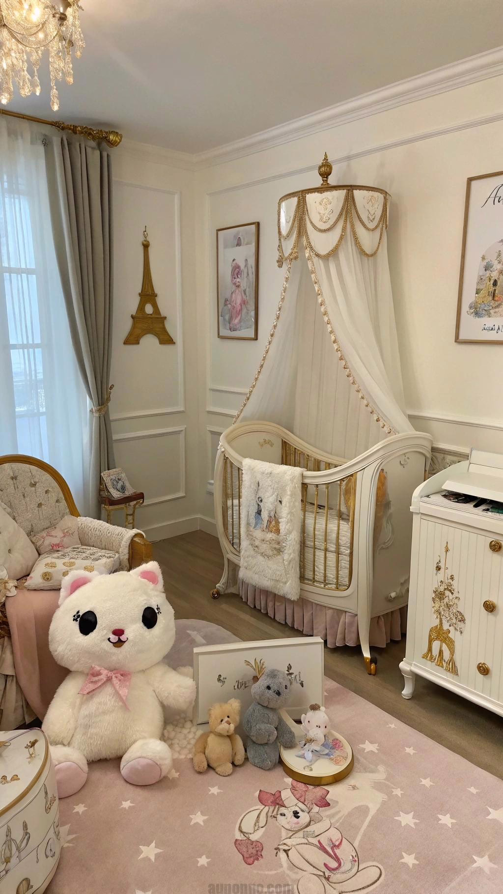Incorporate furniture that reflects the Parisian theme, such as a crib with elegant curves or a changing table adorned with musical notes. You can also add plush toys of the characters to create a cozy and inviting environment.