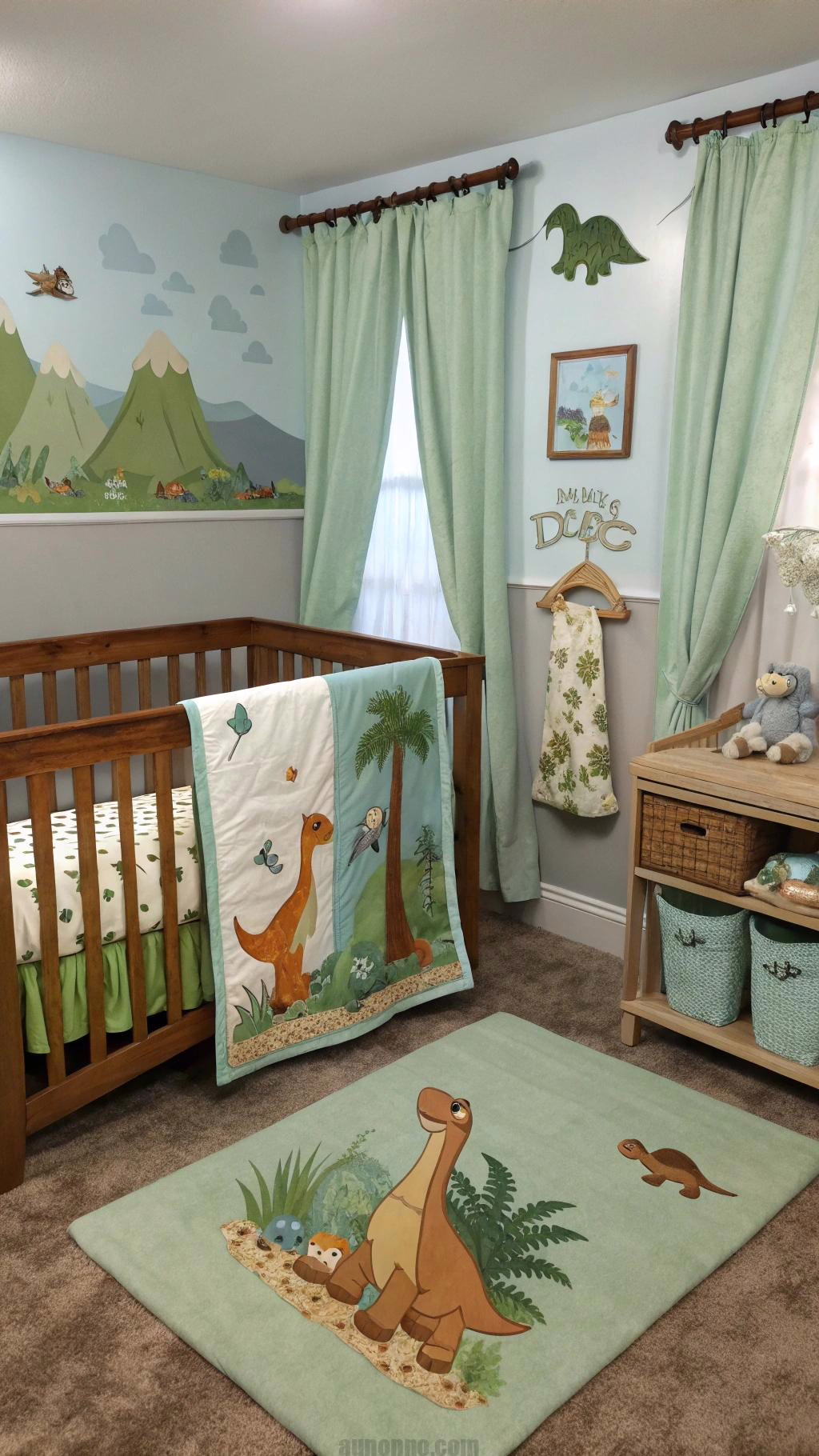 Incorporate furniture that reflects the theme, such as a crib with dinosaur motifs or a changing table adorned with nature designs. You can also add plush toys of the characters to create a cozy and inviting environment.