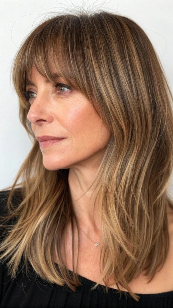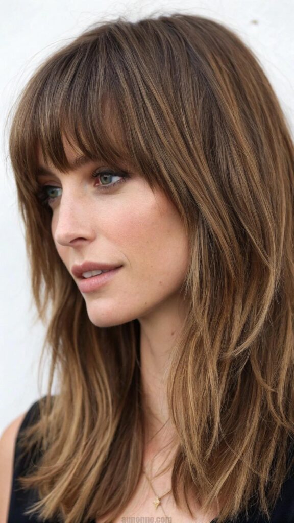 Layered bangs are a fantastic way to add dimension and movement to your hairstyle. This look is perfect for women in their 40s who want to refresh their appearance without making a drastic change. Layered bangs can be styled with various hair lengths and textures, making them a versatile option.