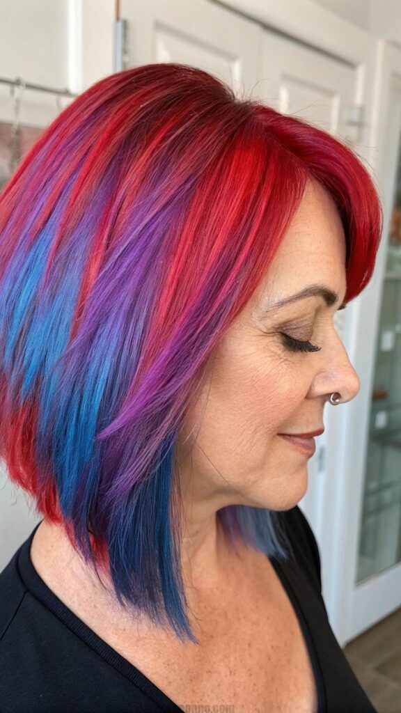 Embracing bold colors is a fantastic way for women in their 40s to express their personality and creativity. Whether you opt for vibrant hues like red, blue, or purple, or choose a more subtle balayage or ombre effect, bold colors can add excitement to your hairstyle. This trend allows you to stand out and showcase your unique style.
