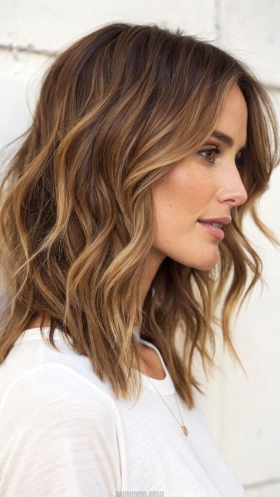 Shoulder-length waves are a perfect compromise between short and long hair. This hairstyle is incredibly versatile and can be styled in various ways, from beachy waves to polished curls.