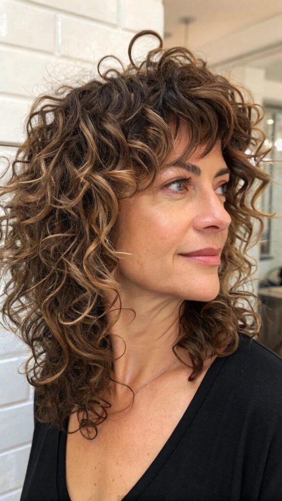 The curly shag is a fun and playful hairstyle that adds texture and volume to your hair. This style is perfect for women in their 40s who want to embrace their natural curls or waves. The curly shag can be customized with layers to enhance movement and create a carefree look.