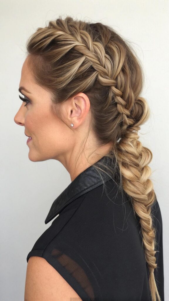 The fishtail braid is a beautiful and intricate hairstyle that adds a touch of elegance to any look. This style is perfect for women in their 40s who want to showcase their creativity and individuality. The fishtail braid can be worn casually or dressed up for special occasions, making it a versatile choice.