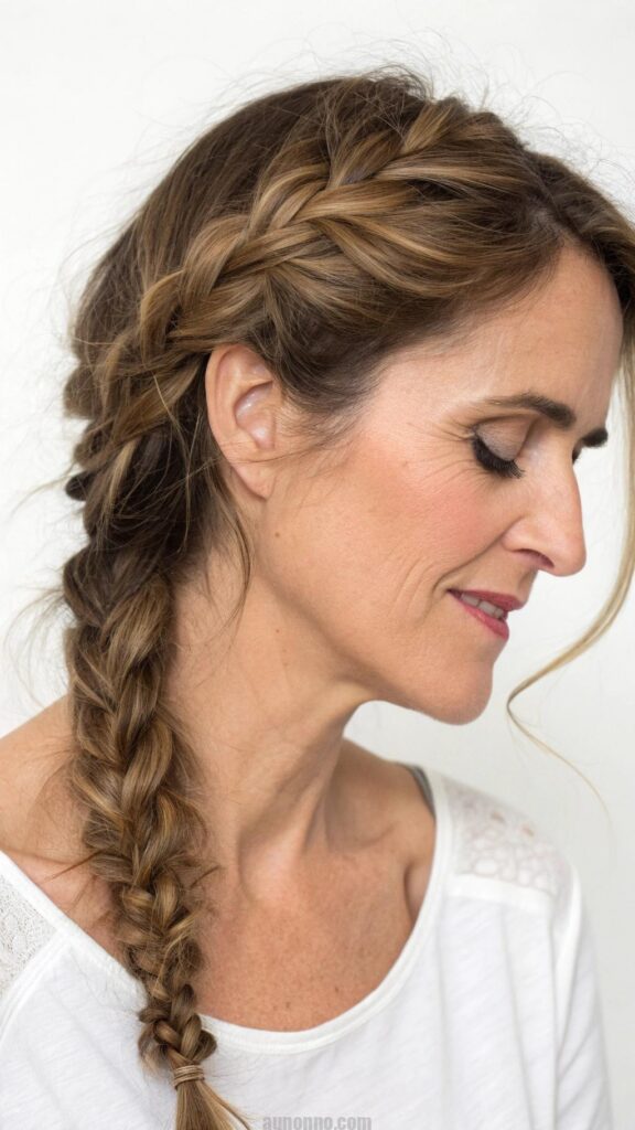 The side braid is a charming and feminine hairstyle that is perfect for women in their 40s. This style is not only easy to create but also adds a touch of whimsy to your look. The side braid can be worn casually or dressed up for special occasions, making it a versatile option.