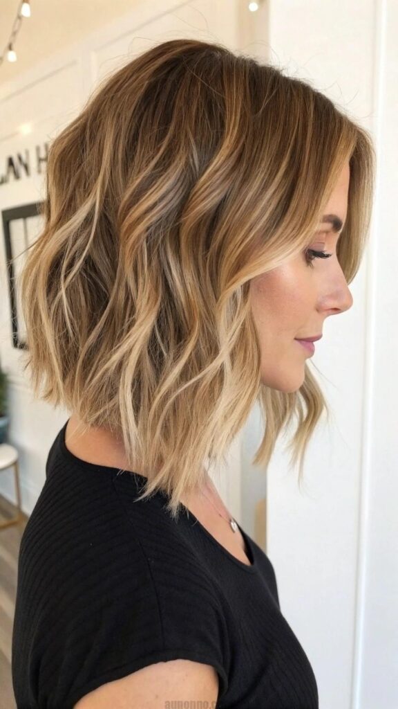 To create a textured lob, ask your stylist for a cut that falls just above the shoulders with layers for added movement. You can style it with a flat iron for a straight look or use a curling wand for soft waves. This hairstyle is ideal for women who want a chic, contemporary look that requires minimal effort.