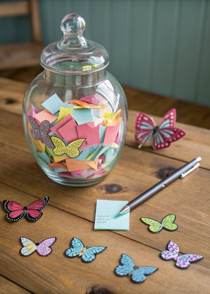 Create a memory jar where guests can write advice or wishes for the parents-to-be. Use a butterfly-shaped jar or decorate a regular jar with butterfly stickers.