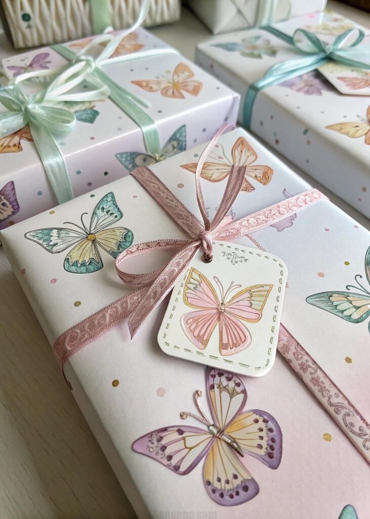 Wrap gifts in butterfly-themed wrapping paper for a cohesive look. Use pastel colors and add butterfly-shaped tags or ribbons.