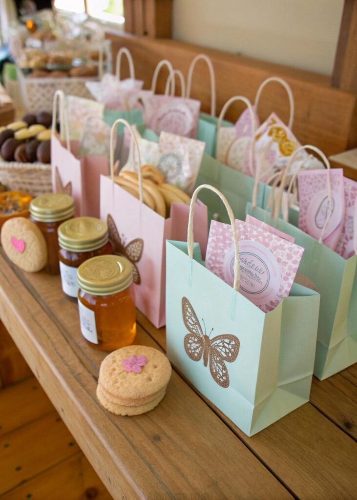 Give guests butterfly-shaped cookies, seed packets for butterfly-attracting flowers, or mini jars of honey with butterfly tags.