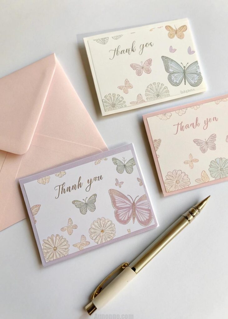 Send butterfly-themed thank-you cards after the event. Use the same design as your invitations for a cohesive look.