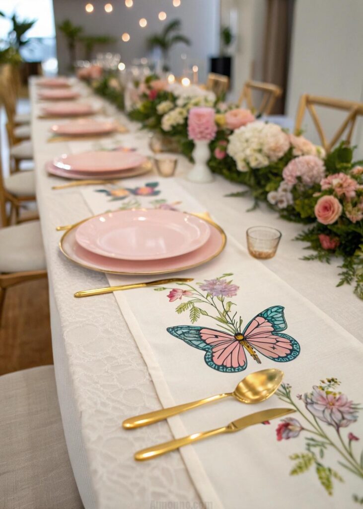 Pair the runners with pastel-colored tableware for a cohesive look. This simple addition will transform your tables into a butterfly wonderland.