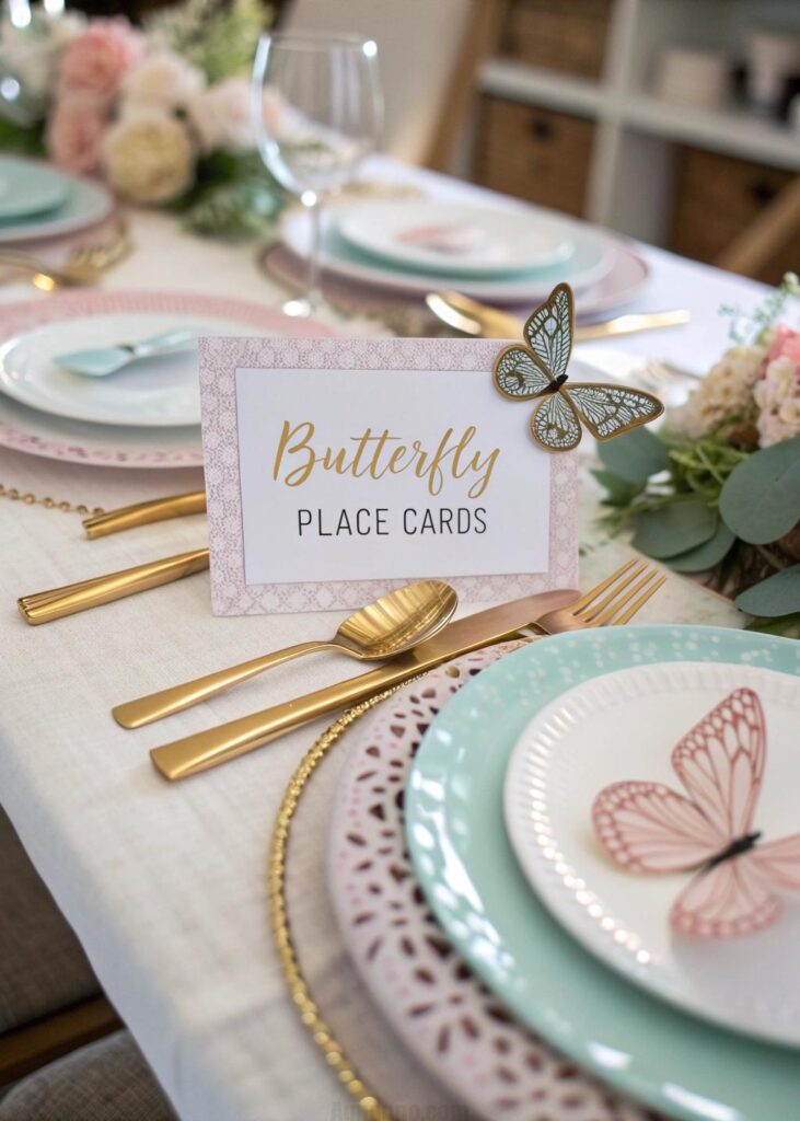 Assign seating with butterfly-themed place cards. Use butterfly-shaped cards or attach small butterfly cutouts to regular place cards.