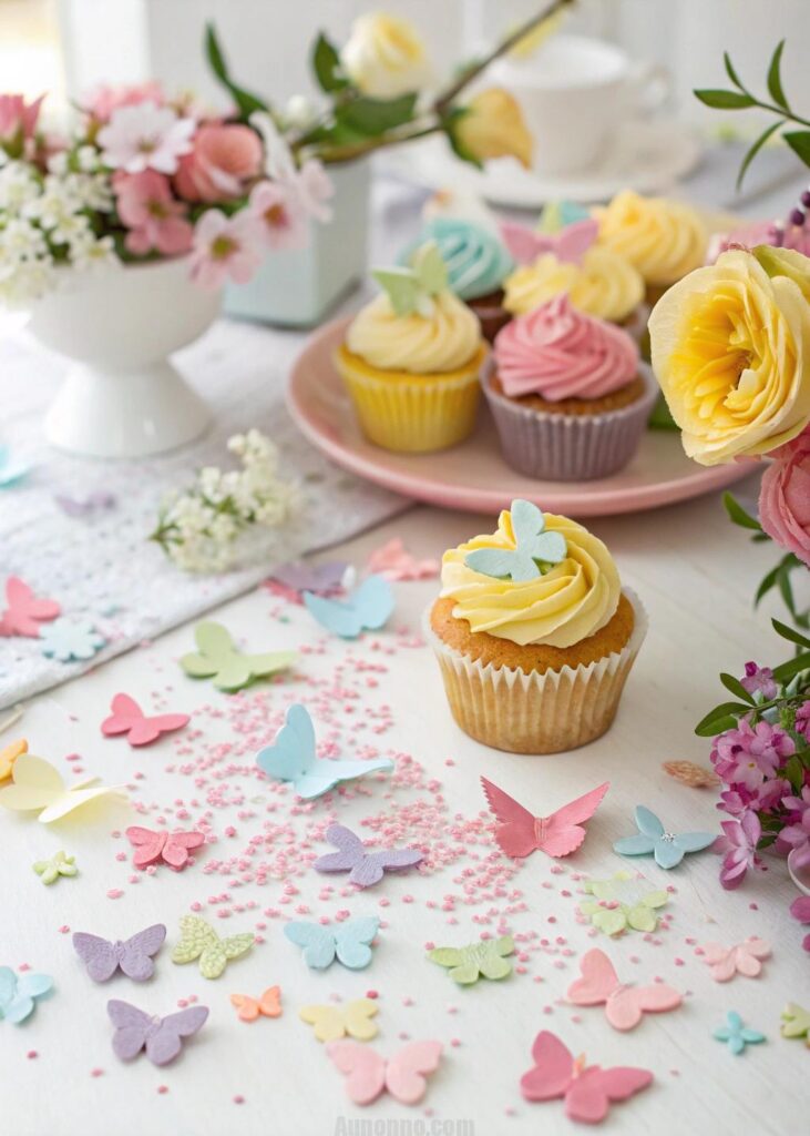 Serve butterfly-themed cupcakes to delight your guests. Decorate vanilla or chocolate cupcakes with pastel-colored frosting and edible butterfly toppers. Use fondant or wafer paper to create delicate butterfly shapes.