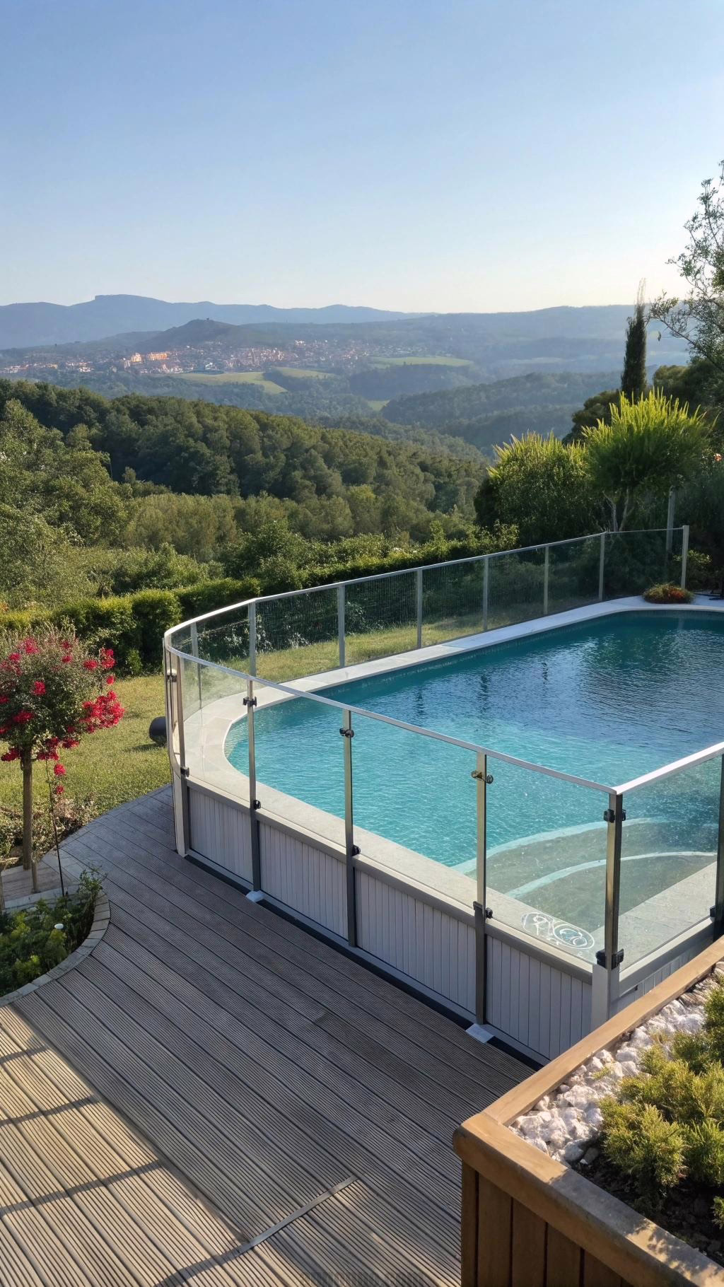 Glass railings offer safety without obstructing the view, making your pool area feel more open and connected to the outdoors. This modern feature is ideal for decks with scenic surroundings or beautiful landscaping. Glass panels are easy to clean and add a touch of elegance.