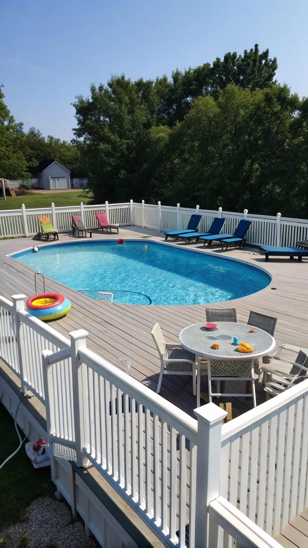 Design your deck with families in mind by including safety features, comfortable seating, and space for games. Install a sturdy fence, set up sun chairs, and leave room for pool toys or a small play area. This setup ensures everyone can relax and enjoy the pool together.