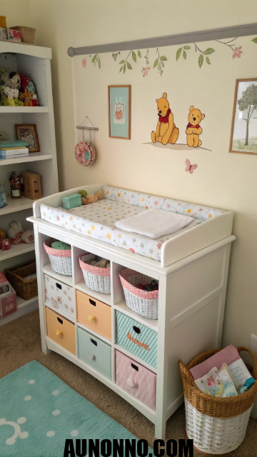 A changing table is an essential piece of furniture in any nursery, and you can easily incorporate the Winnie the Pooh theme into this functional area.