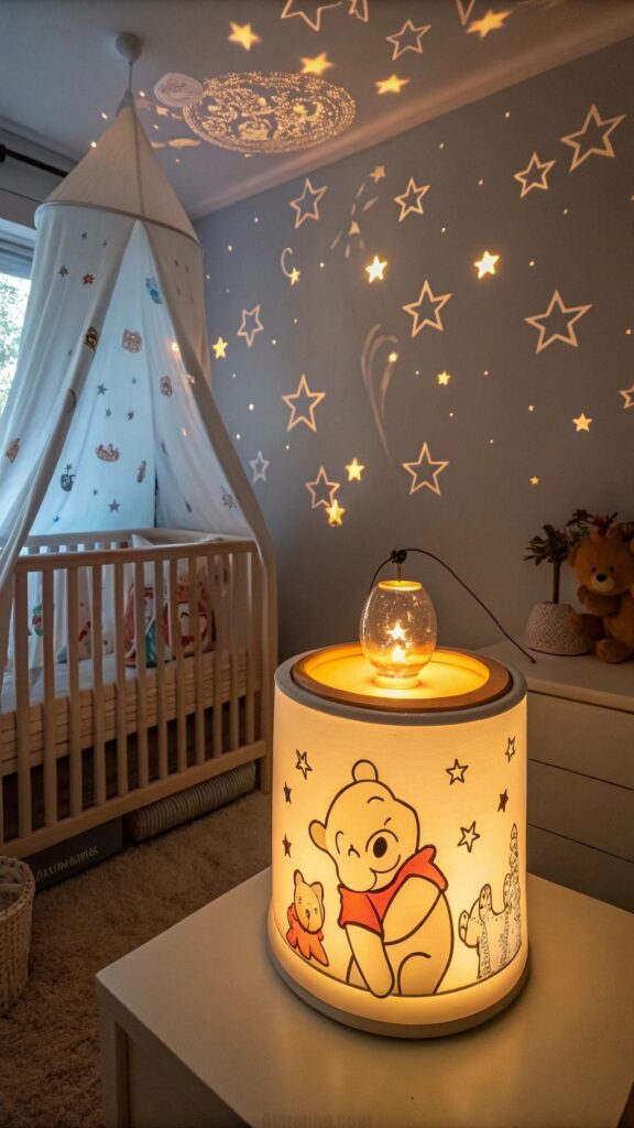 Consider choosing a nightlight that projects stars or images of Pooh and friends onto the ceiling, adding an enchanting touch to the room. This not only serves a practical purpose but also enhances the overall decor. By incorporating a themed nightlight, you can create a soothing environment that embodies the magic of Winnie the Pooh.