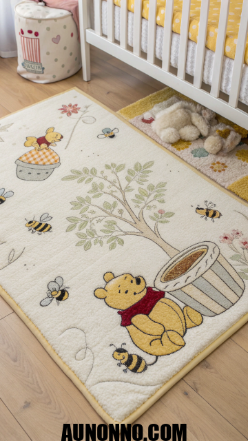 A soft, cozy rug can add warmth and comfort to your nursery while enhancing the Winnie the Pooh theme. Look for rugs that feature playful designs, such as honey pots, bees, or the characters themselves.