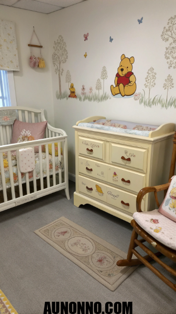 When it comes to furniture, consider incorporating pieces that reflect the Winnie the Pooh theme. Look for cribs, dressers, and rocking chairs that feature subtle Pooh motifs or soft colors inspired by the characters. A vintage-style dresser painted in pastel colors can add a charming touch to the room.