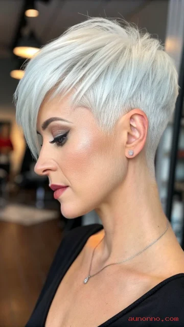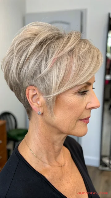 Styling for mature skin often involves using texturizing products to add volume and movement. The slightly longer length also requires less frequent cuts than extremely short pixies. This version proves that edgy, modern styles work at any age with proper customization.