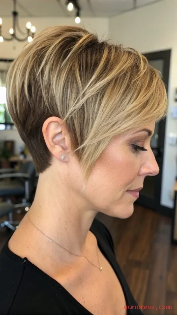 Asymmetrical pixies work beautifully for women over 50, offering a youthful, modern appearance without looking like you’re trying too hard. The cut can be adapted with longer side sections to avoid appearing too severe. Soft layers prevent a harsh appearance while maintaining the edgy asymmetrical structure.