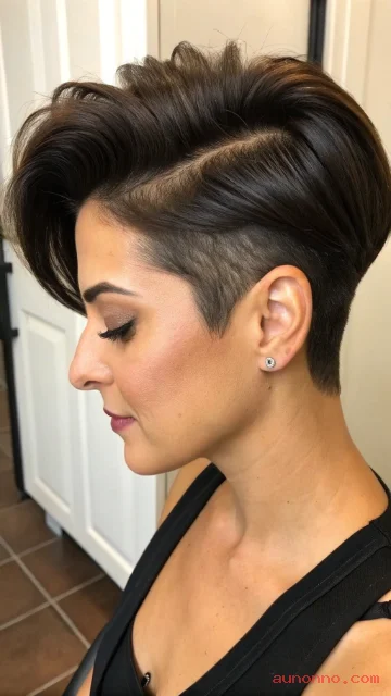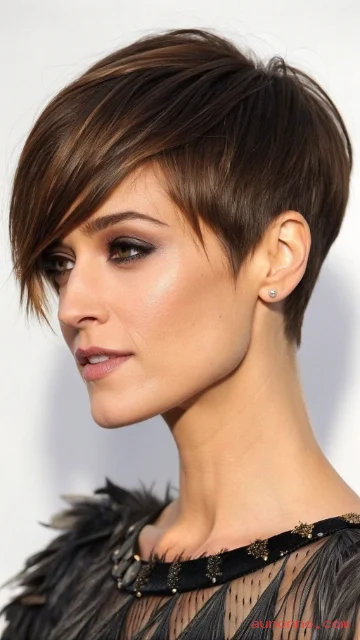 Creating drama through an extreme side part transforms an asymmetrical pixie into something distinctly different. Hair swept fully to one side creates a dramatic line that emphasizes the asymmetrical cut. This styling approach works with various cut types but really shines with asymmetrical designs.
