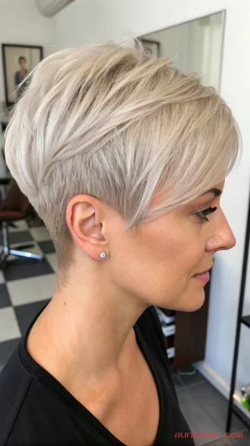 Choppy blonde pixies require consistent toning to keep yellow undertones at bay. Using purple-toned shampoo and conditioner helps maintain that cool, fresh blonde appearance. The investment in proper hair care keeps this style looking salon-fresh between appointments.