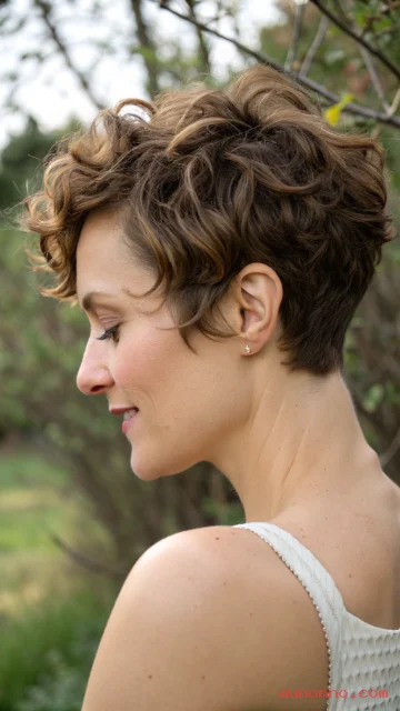Wavy-haired people often think pixies aren’t for them, but an asymmetrical cut celebrates natural waves beautifully. The uneven lengths work with wave patterns rather than against them. Shorter areas tighten waves while longer sections allow waves to flow more freely.