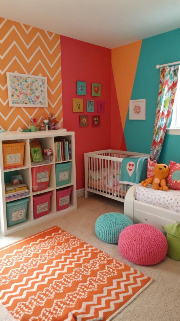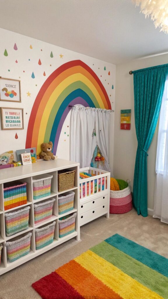 Incorporate fun accessories, such as colorful storage bins and playful rugs. Choose bedding with bright patterns and plush toys in various colors. A cozy reading nook with colorful books can encourage a love for reading and exploration.