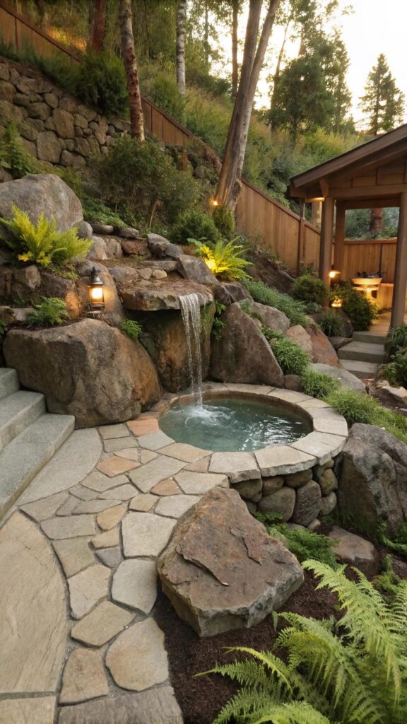 Rustic Stone Hot Tub with Waterfall
