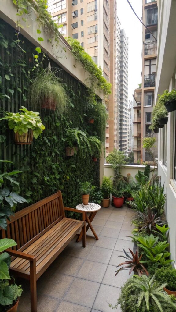 Add comfortable seating and a small table for a cozy nook. Use lighting to highlight the plants at night. This design is perfect for plant lovers and urban dwellers.