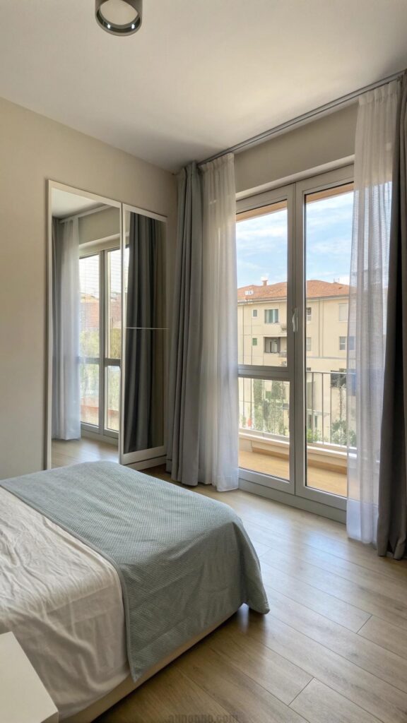 Place mirrored nightstands or a dresser alongside beige or grey elements. The reflections make the room feel larger and brighter. Pair with soft textures like a plush rug or velvet headboard.