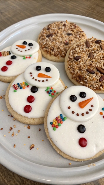 Add a twist to traditional snowman cookies by incorporating nuts. Use a round cookie cutter and decorate with white icing. Add crushed nuts for texture and use candy for the eyes, nose, and buttons. These cookies not only look great but also offer a delightful crunch.