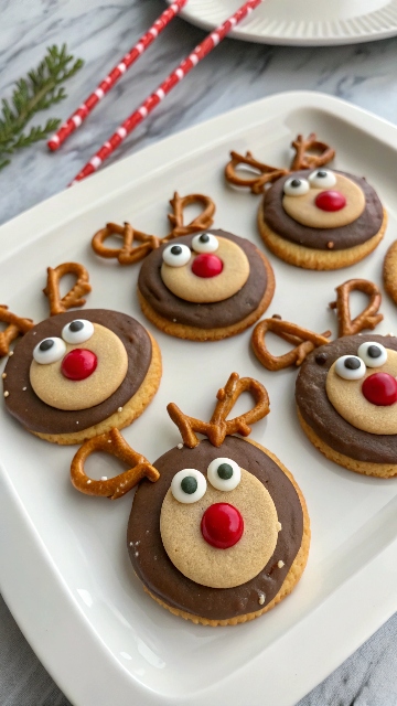 Bring the magic of Christmas to life with adorable reindeer cookies. Use a round cookie cutter for the base and decorate with brown icing for the body. Use pretzels for antlers, candy eyes, and a red candy for the nose to create a fun and festive look that kids will love.