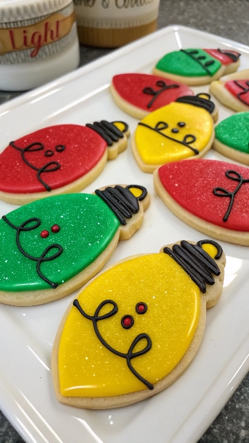 Celebrate the festive spirit with Christmas light cookies. Use a light bulb-shaped cookie cutter and decorate with bright colors. Use black icing to create the wire and add a shiny finish with edible glitter. These cookies are sure to brighten up your holiday cookie display.