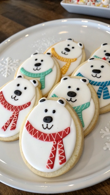 Create adorable polar bear cookies that are perfect for winter. Use a round cookie cutter for the base and decorate with white icing. Use black icing for the eyes and nose, and add a scarf made of colored icing or fondant. These cute cookies will be a hit at any holiday gathering.